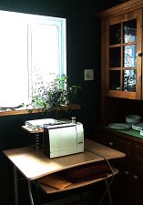 The temporary sewing station. Note, this is the new window that Attila put in, to replace the door on the north side of the house.