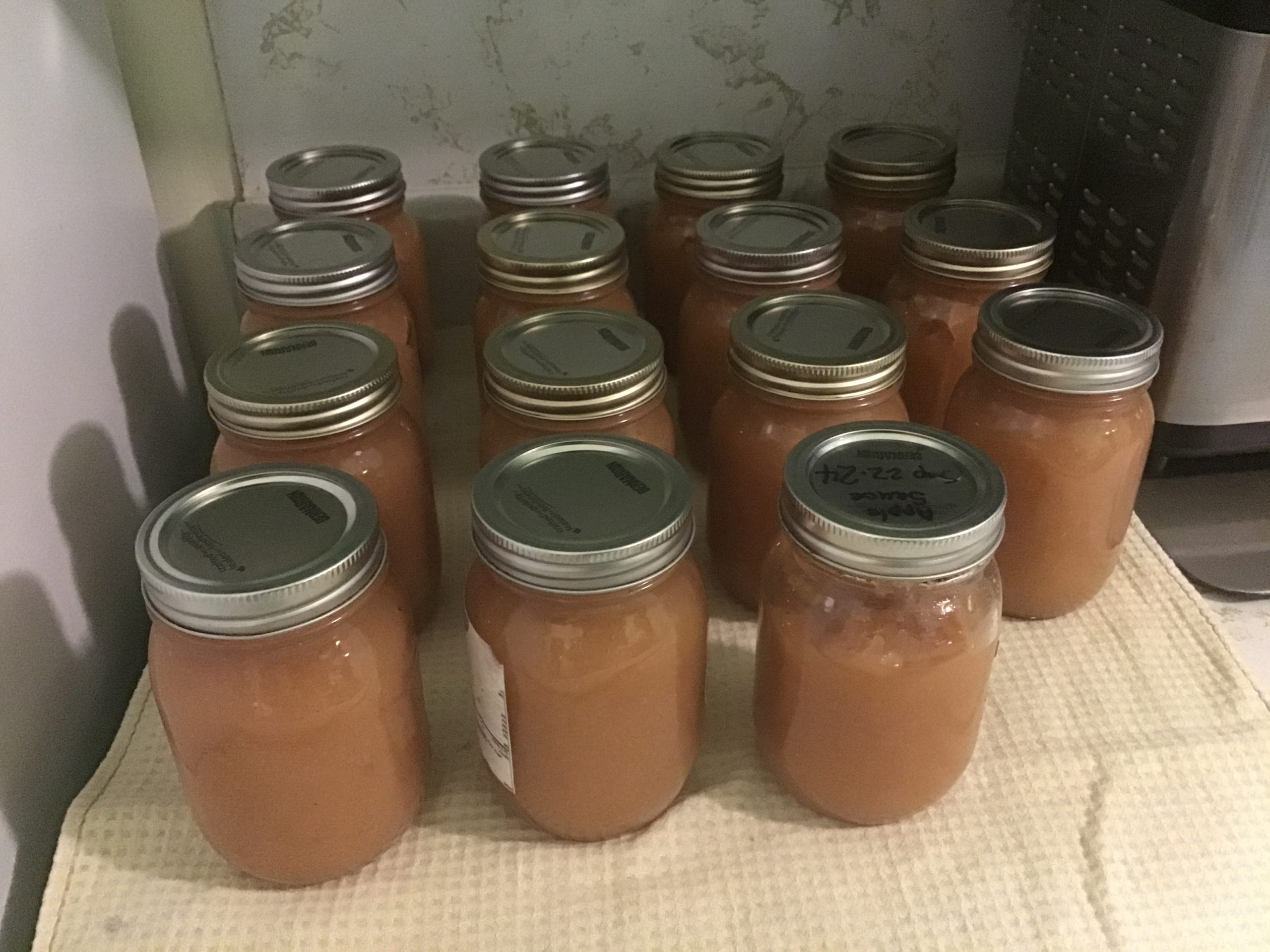 This evening I canned 15 500-ml jars of applesauce.